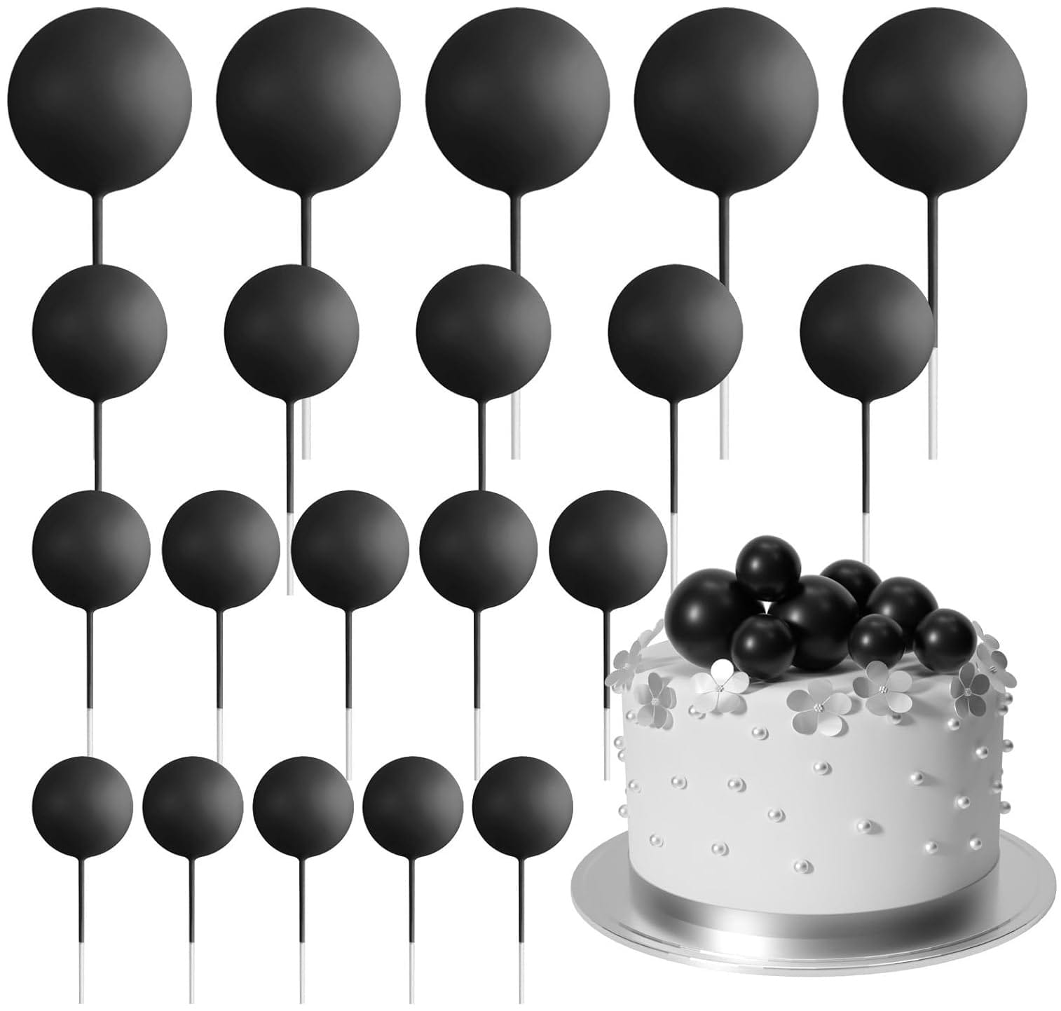 20 x czarne kule na piku NA TORT URODZINOWY TOPPER + GRATIS
