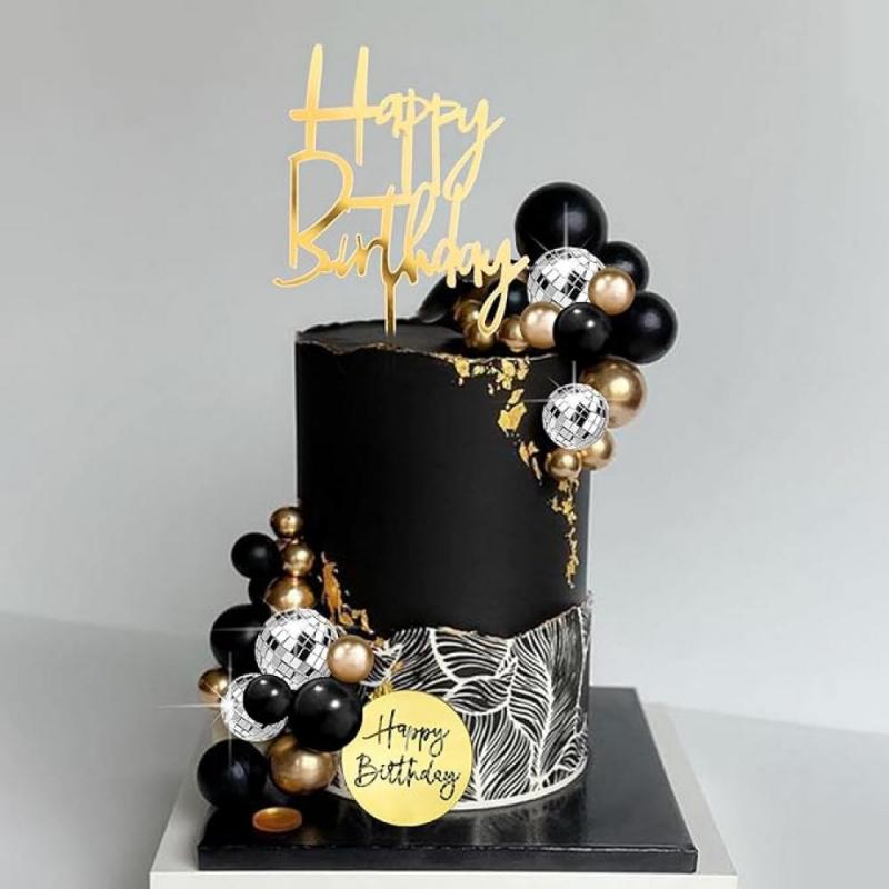 20 x czarne kule NA TORT URODZINOWY TOPPER + GRATIS