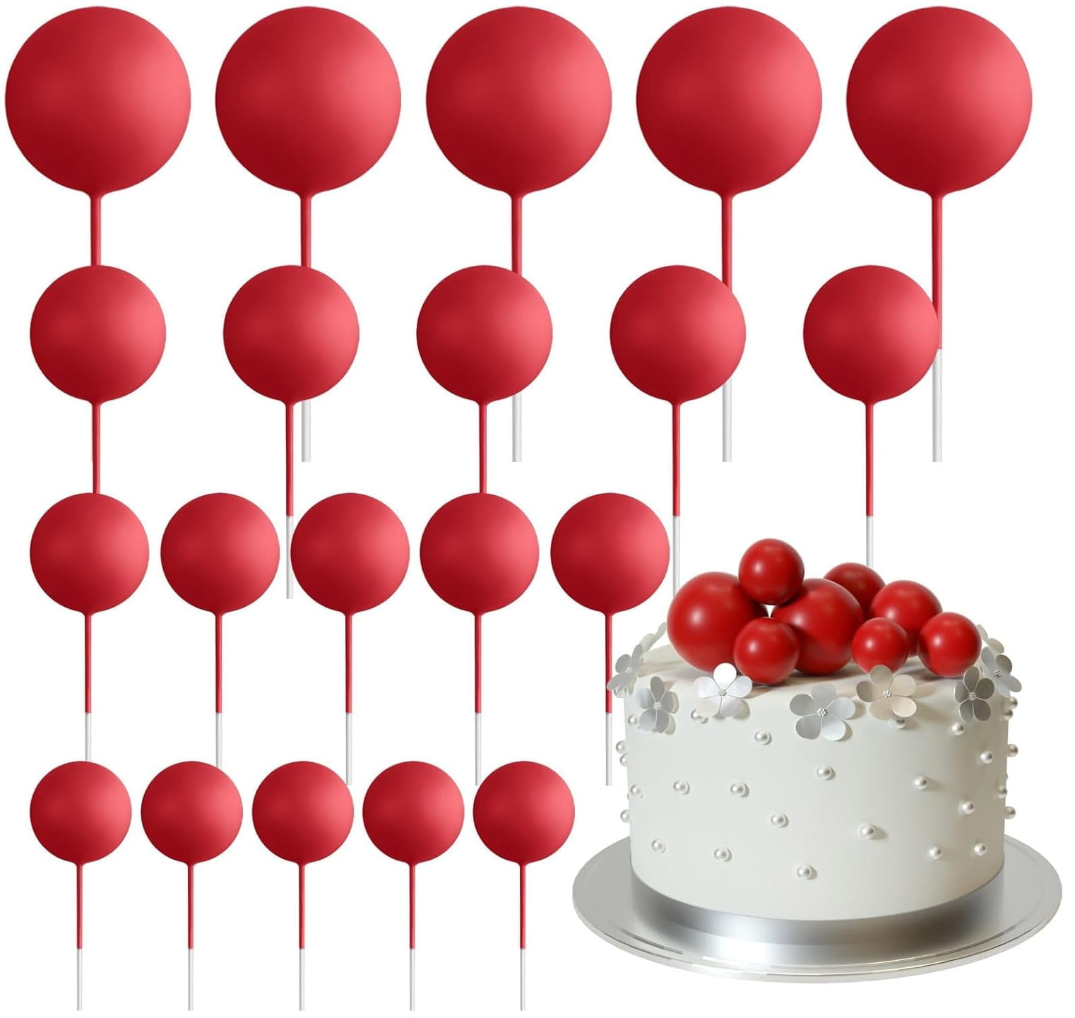 20 x kule na piku kolor czerwony NA TORT URODZINOWY TOPPER + GRATIS