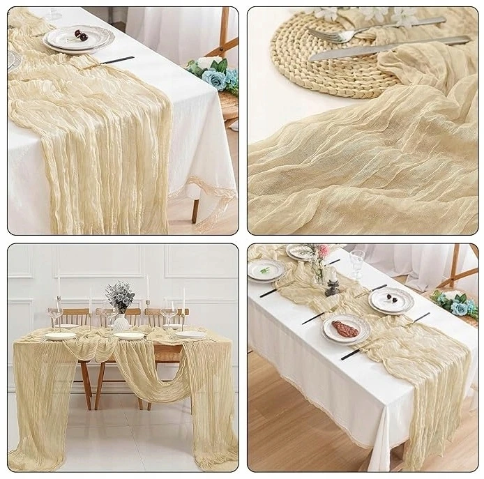Dodaj swojemu przyjęciu wyjątkowego blasku dzięki naszemu marszczonemu bieżnikowi w kolorze kremowym. To idealny wybór dla osób szukających subtelności i ponadczasowej klasyki, która rozjaśni każde wnętrze. Dzięki unikalnej strukturze gazy, bieżnik pięknie się układa, nadając aranżacji lekkości, świeżości oraz romantycznego charakteru, wpisując się w najmodniejsze trendy dekoracyjne.