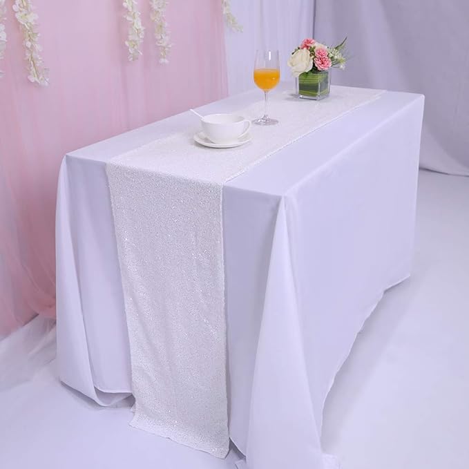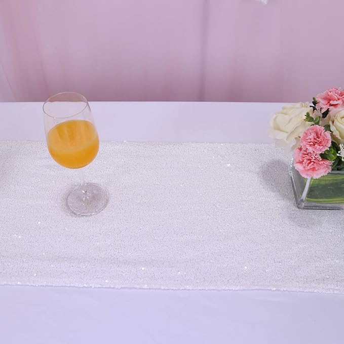 Ten biały opalizujący bieżnik cekinowy to niezastąpiony element dekoracyjny na: