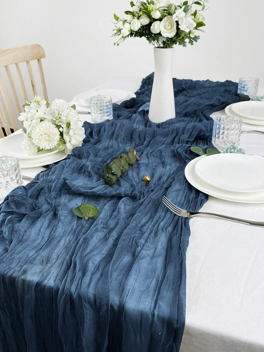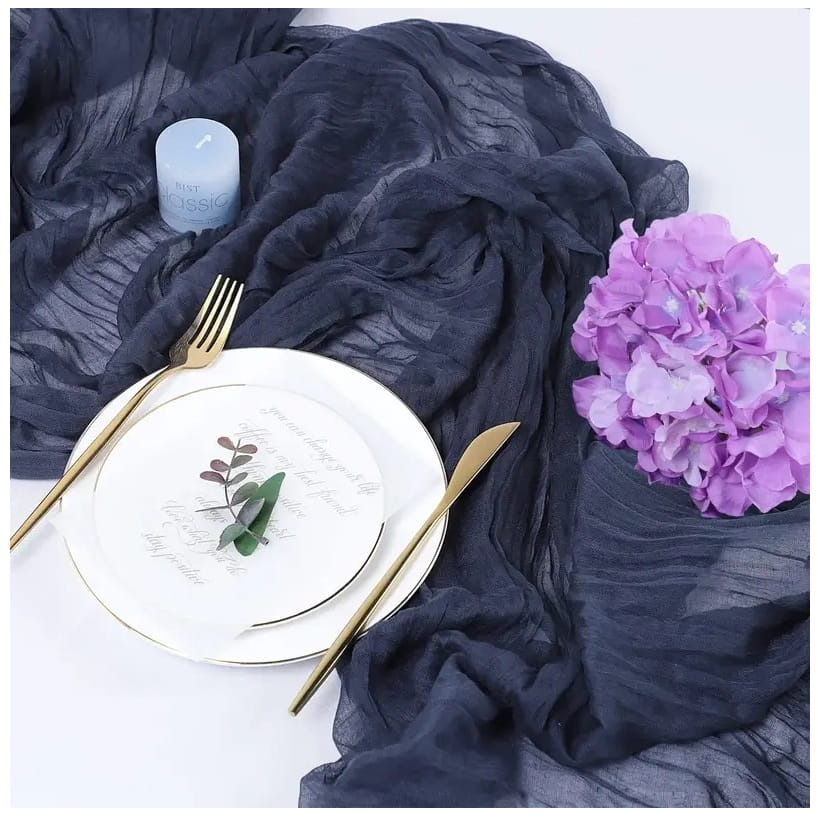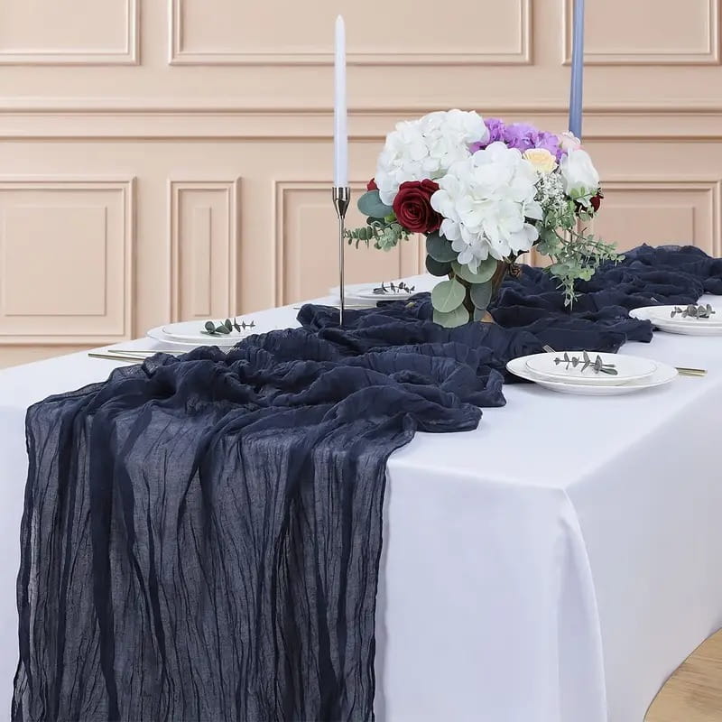 Ten granatowy bieżnik boho to niezastąpiony element dekoracyjny, który doskonale kontrastuje z białą zastawą lub złotymi dodatkami. Świetnie sprawdzi się na prestiżowych galach, weselach oraz jako stylowa dekoracja świątecznego stołu. Wysoka jakość materiału i efektowne marszczenia przyciągną wzrok każdego z gości, tworząc wyjątkowo wykwintną oprawę spotkania.