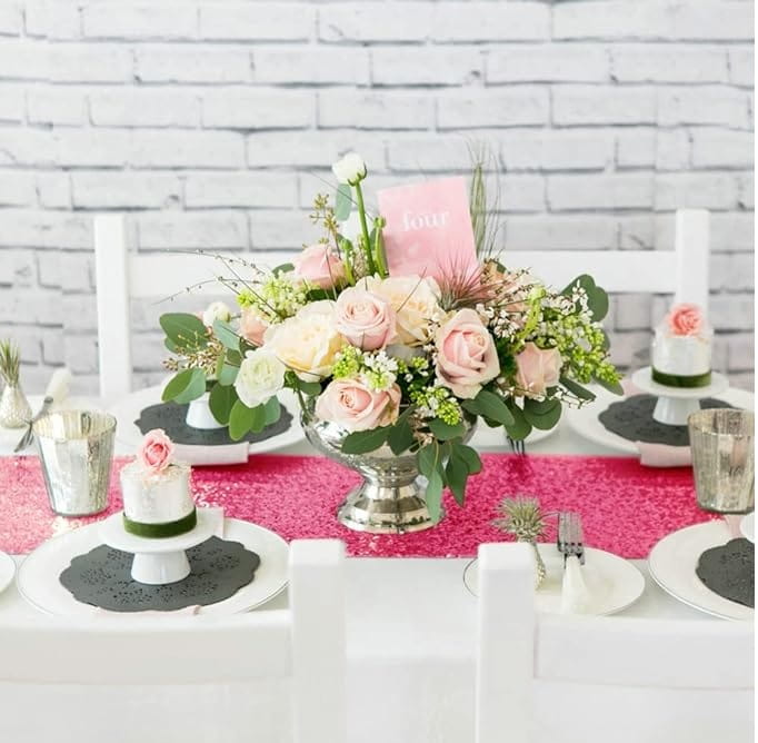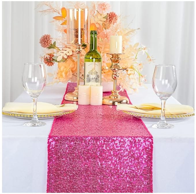 Ten różowy bieżnik cekinowy to niezastąpiony element dekoracyjny na: