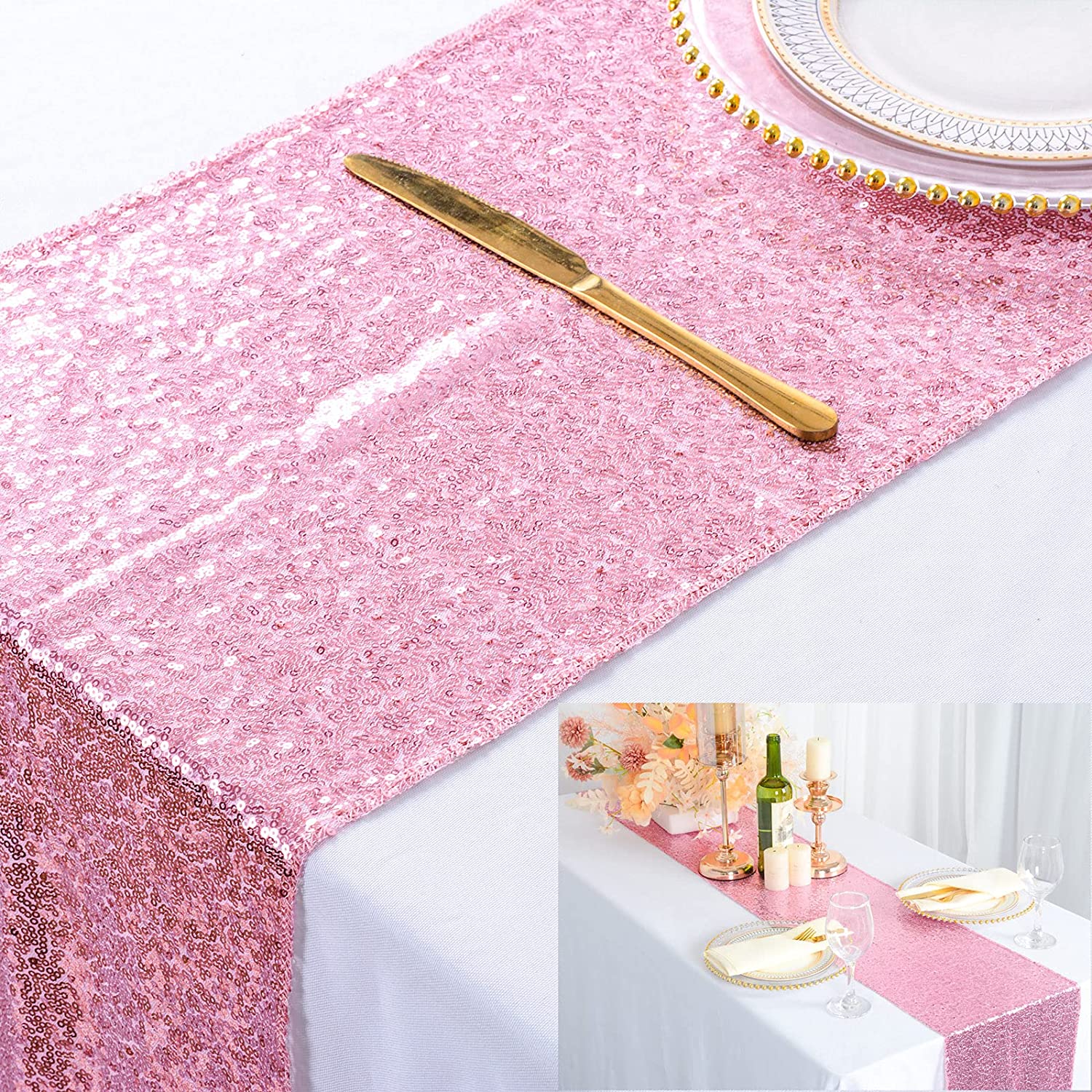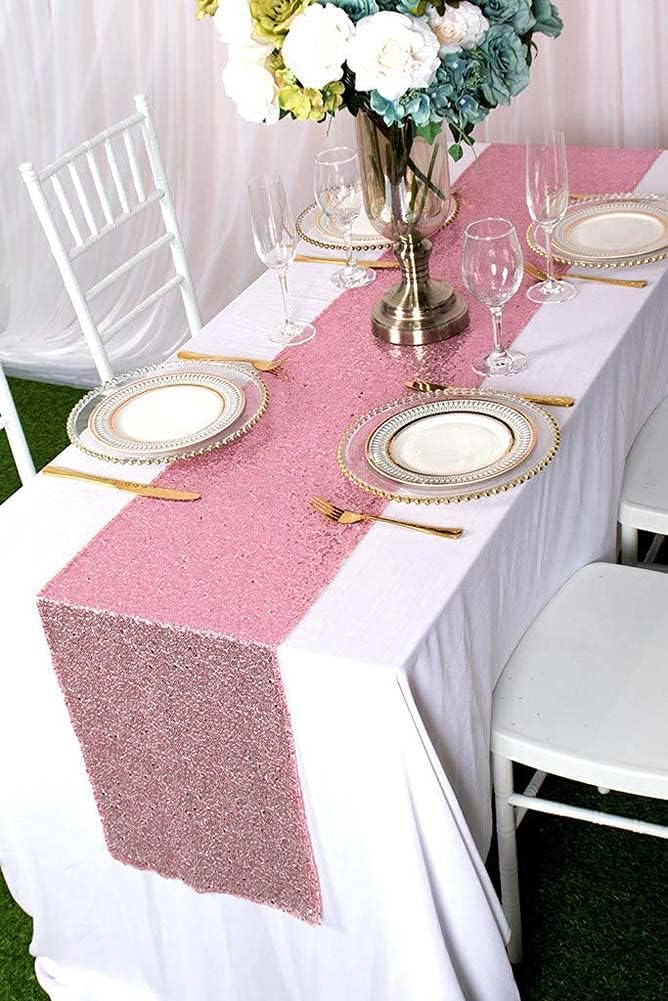 Bieżnik różowy cekinowy 30x300cm