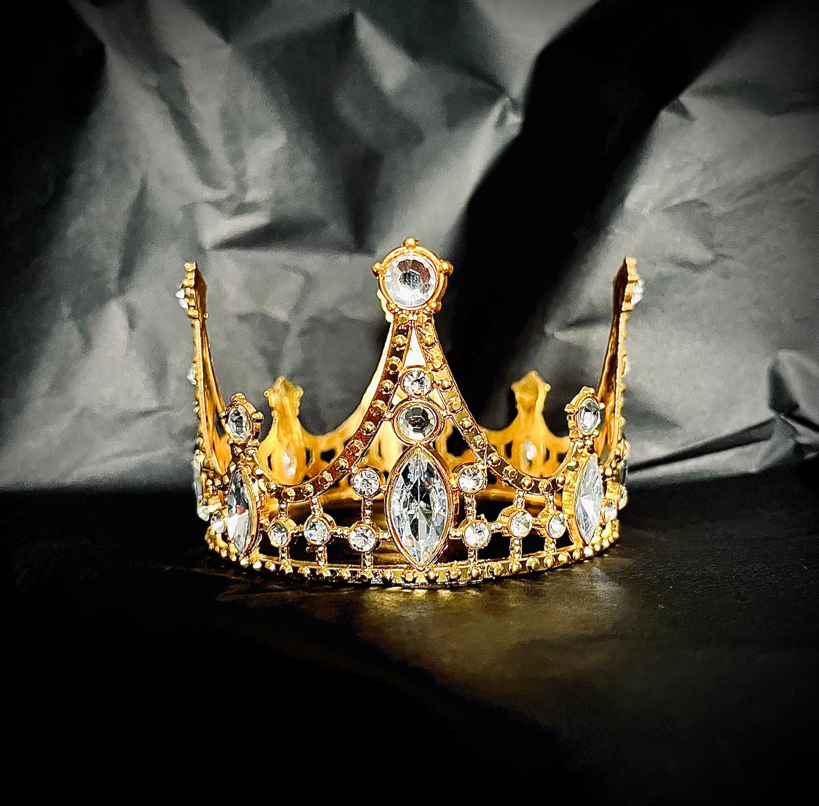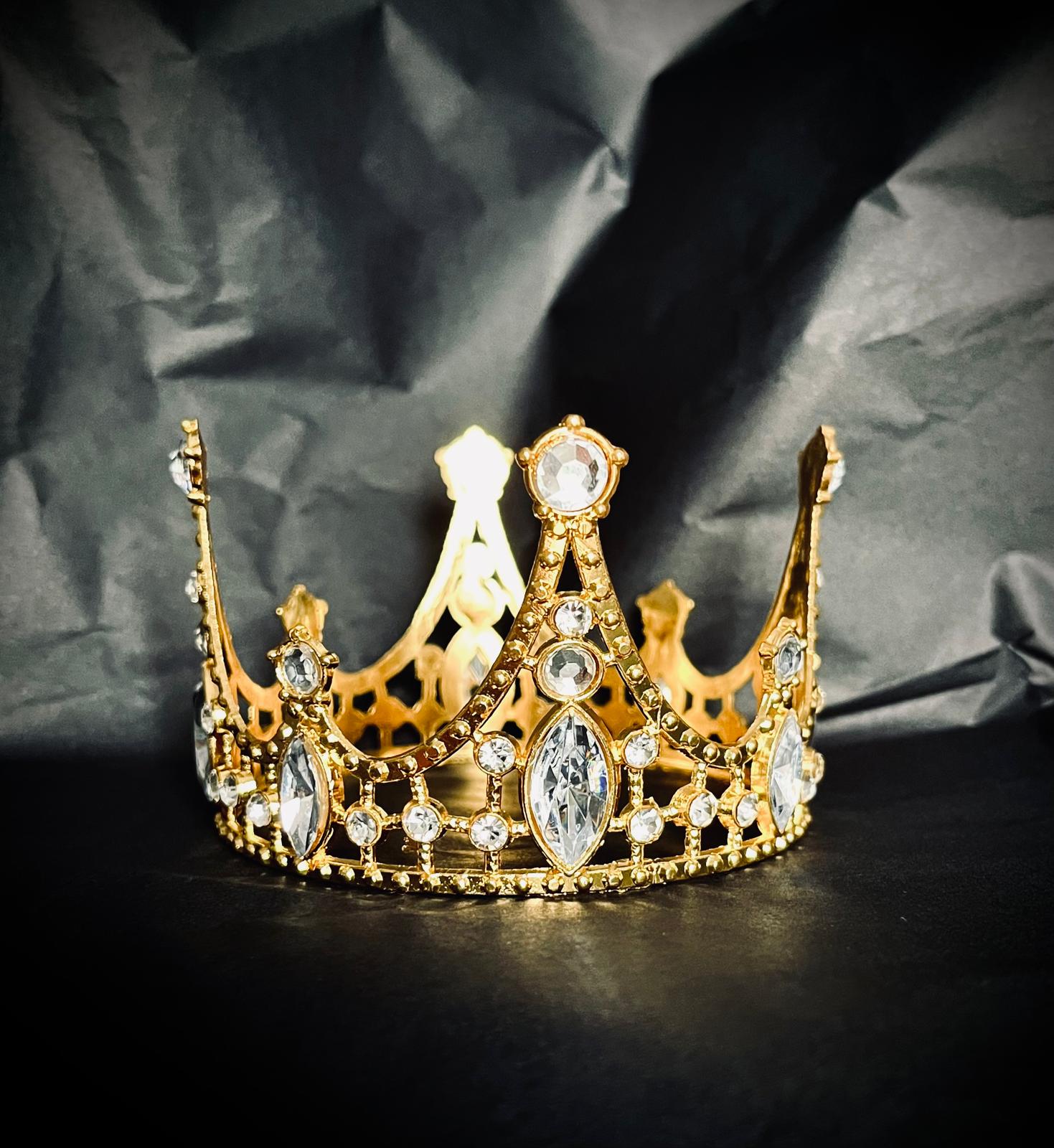 Korona dekoracja na tort złota metalowa