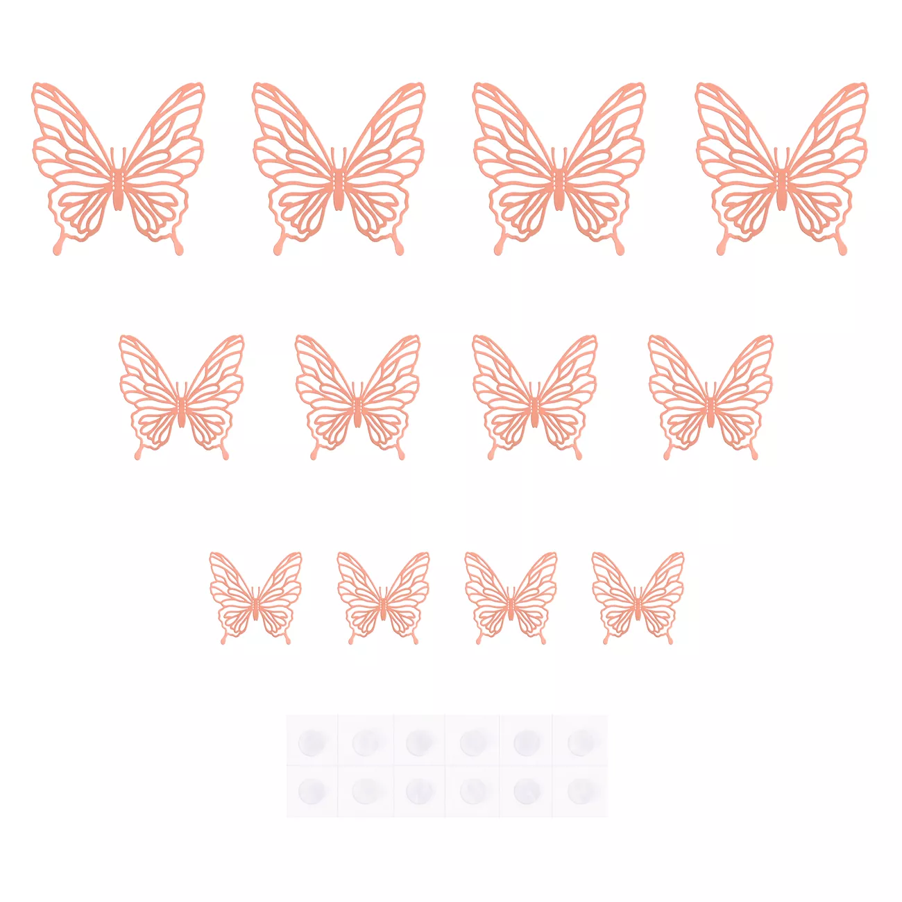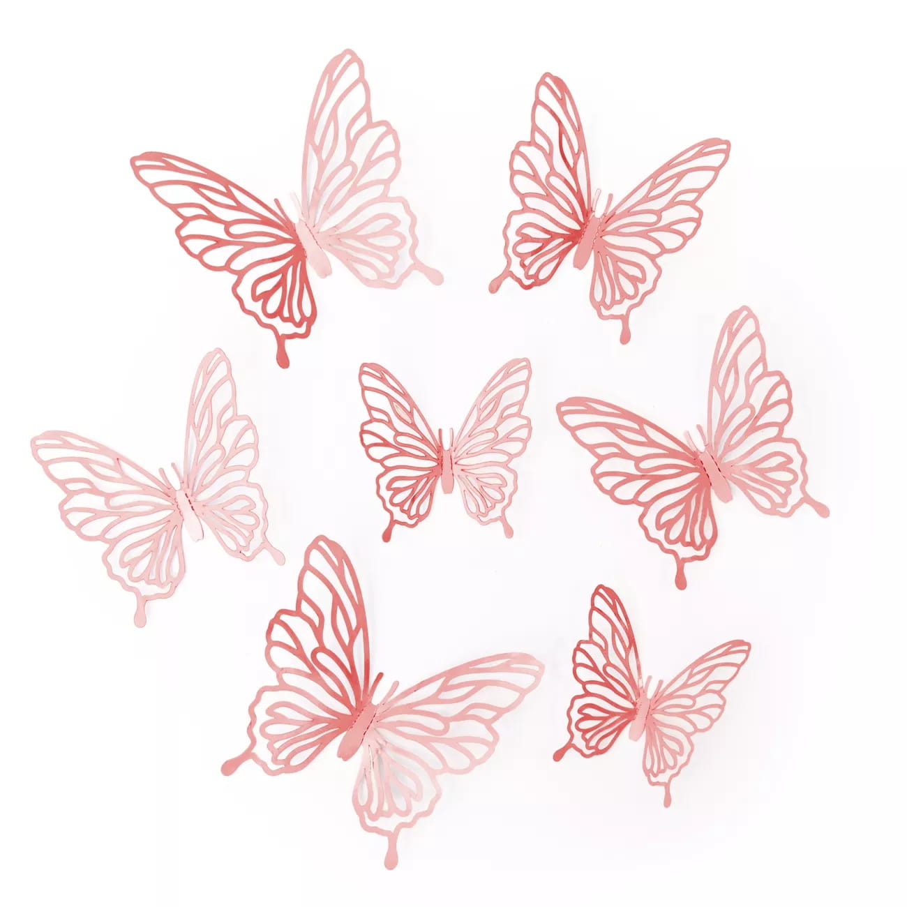 Zestaw 12 różowych motylków z papieru w różnych rozmiarach: