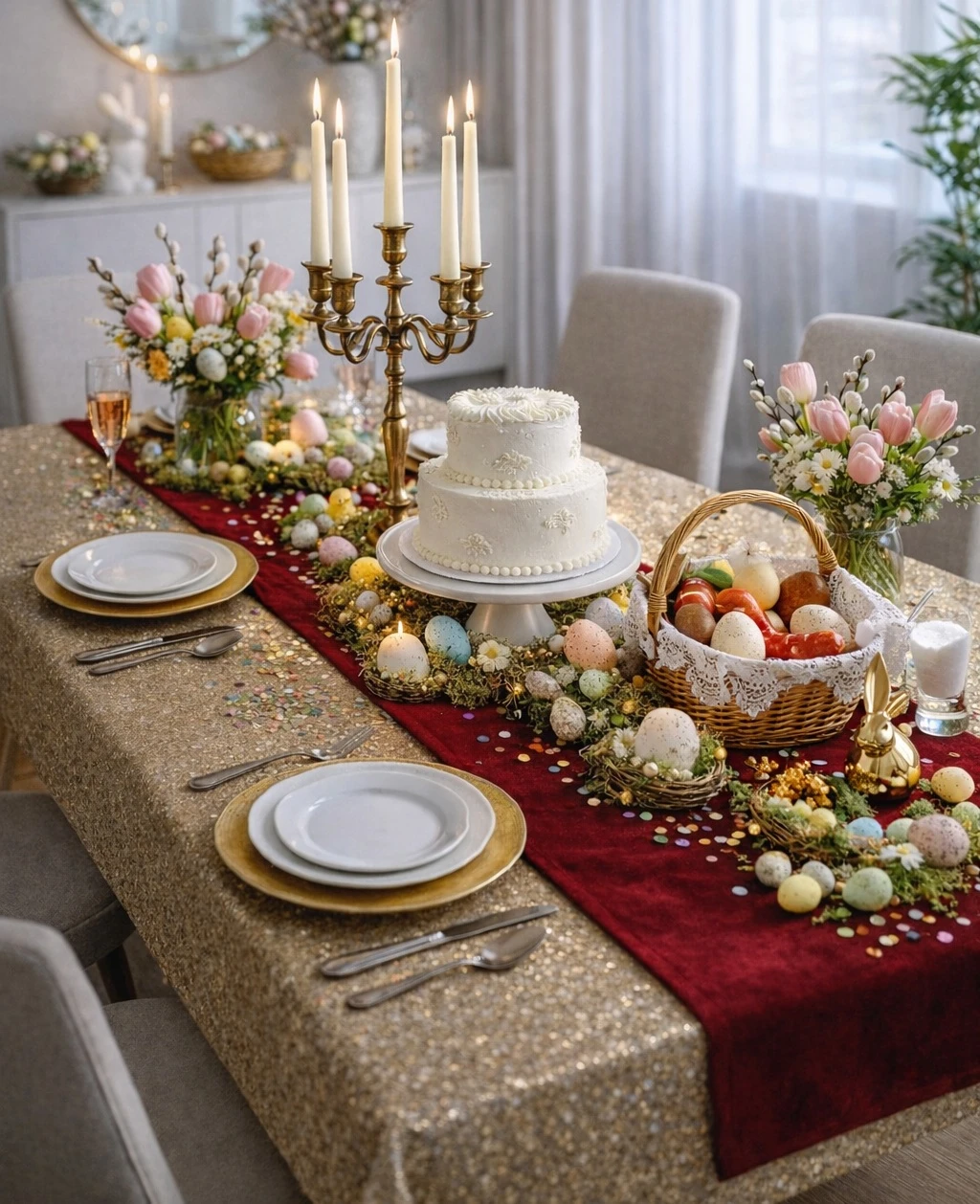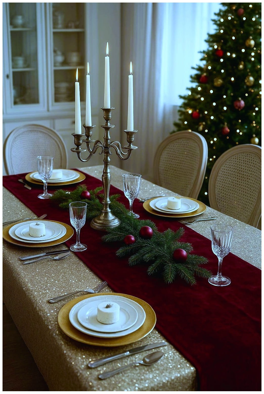 Obrus na stół świąteczny złoty platynowy cekinowy + Gratis bieżnik