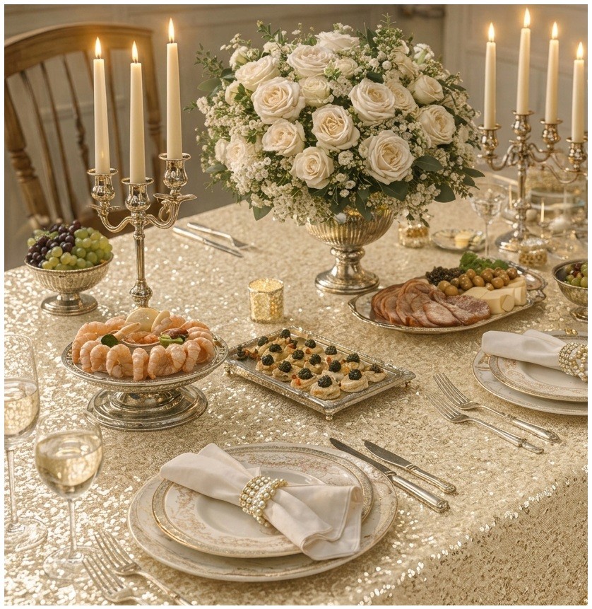 Obrus zloty szampański cekinowy 120x180