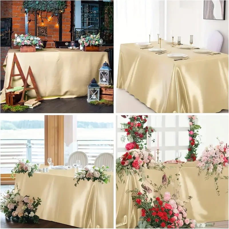 Ten złoty szampański obrus satynowy to niezastąpiony element dekoracyjny, który idealnie sprawdzi się na wszelkiego rodzaju przyjęcia, bankiety, wesela czy jako stylowa baza na "słodkich stołach". Wysoka jakość poliestru gwarantuje wytrzymałość i zwiększoną odporność na zabrudzenia, a staranne wykończenie dodaje stołowi prestiżu, przyciągając wzrok każdego z gości.