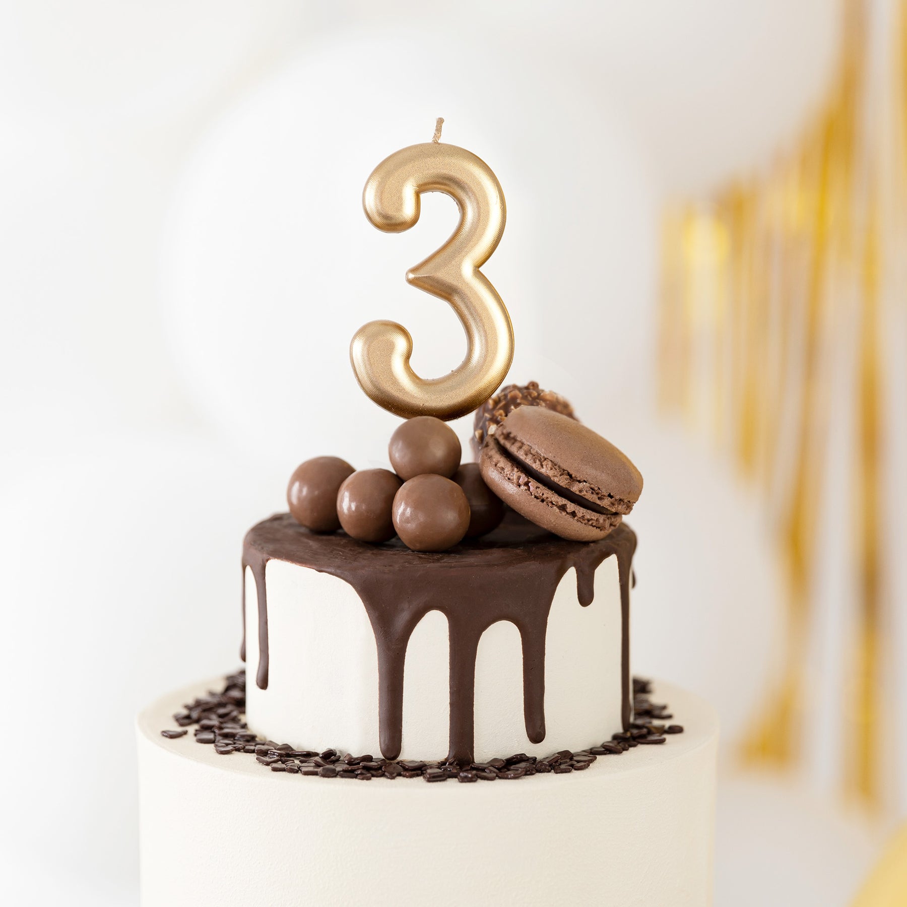 ŚWIECZKA URODZINOWA CYFRA 3 TRZY ZŁOTA 10cm