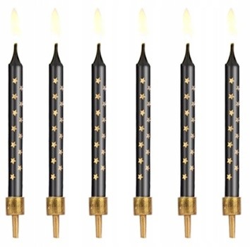 Świeczki czarno złote gwiazdki DEKORACJA NA TORT