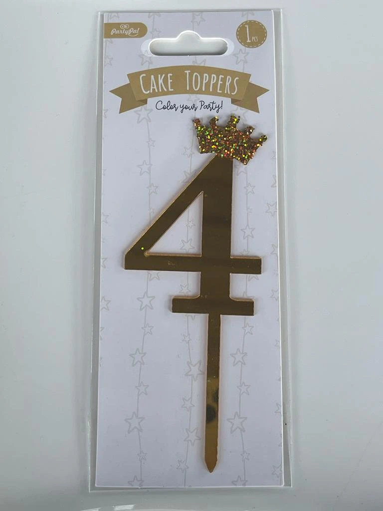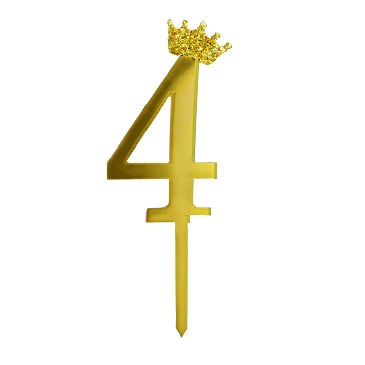 PIĘKNY ZŁOTY TOPPER NA TORT - CYFRA 4 ZE ZŁOTĄ BROKATOWĄ KORONĄ