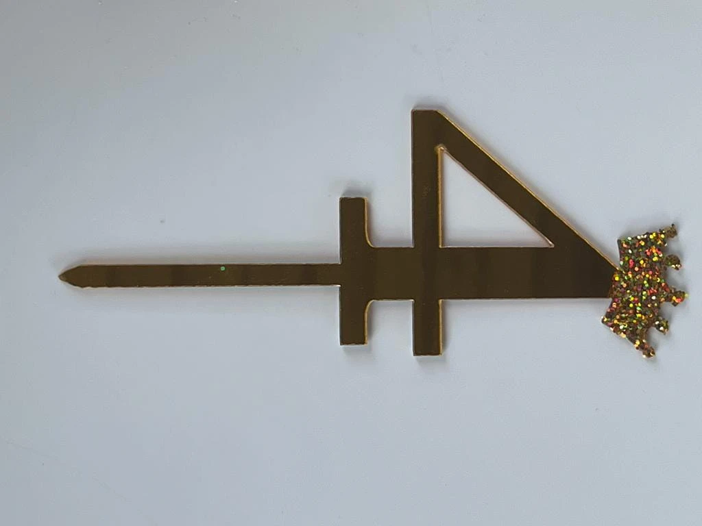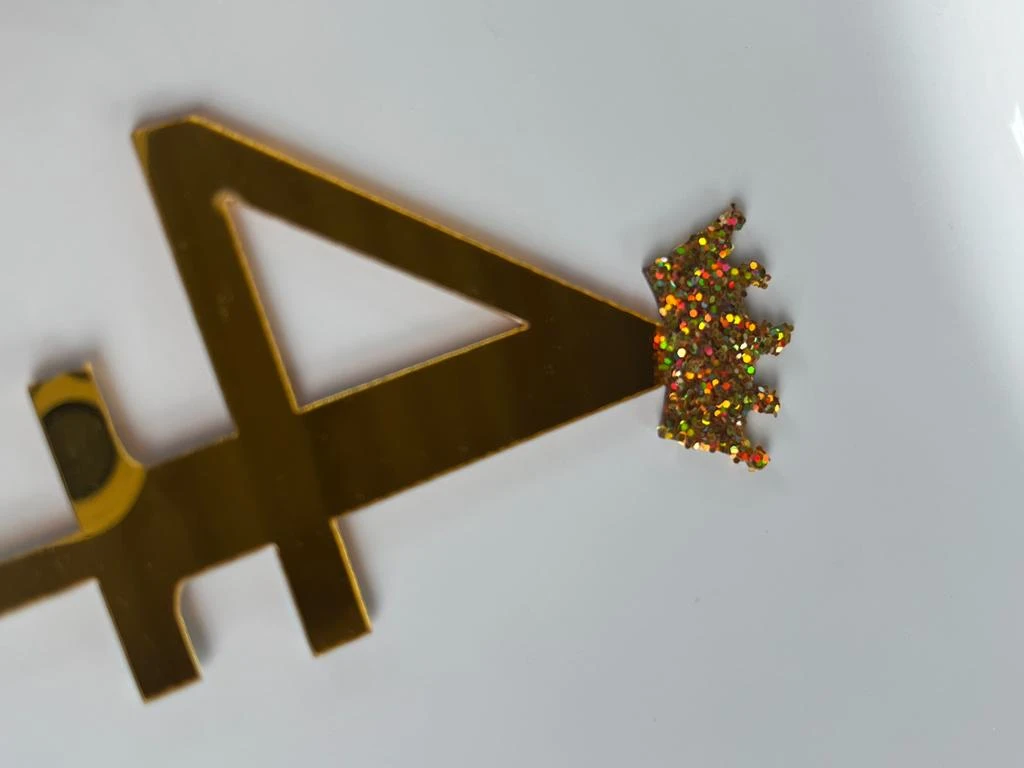 Topper na tort złota cyfra 4 lustro, korona brokat