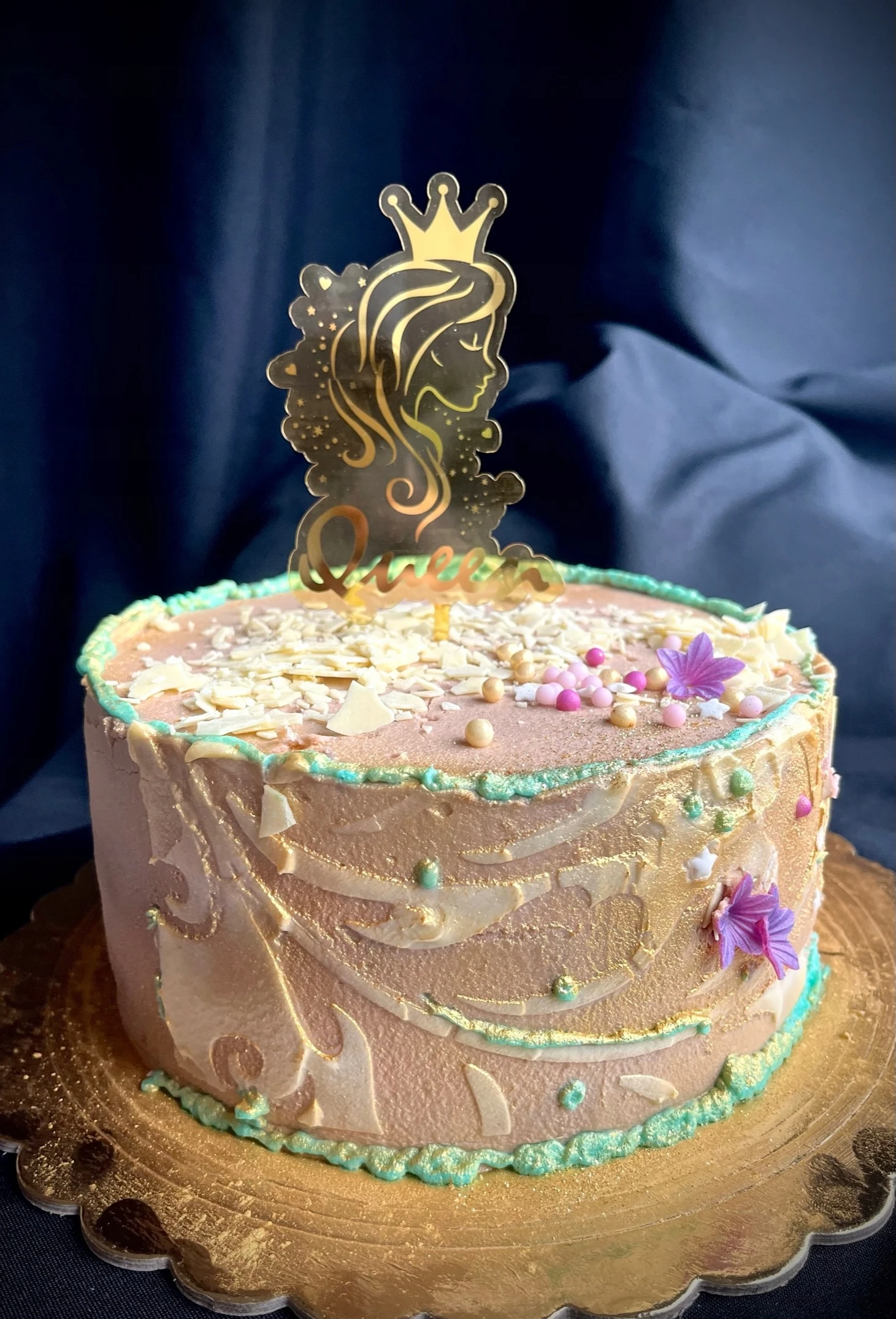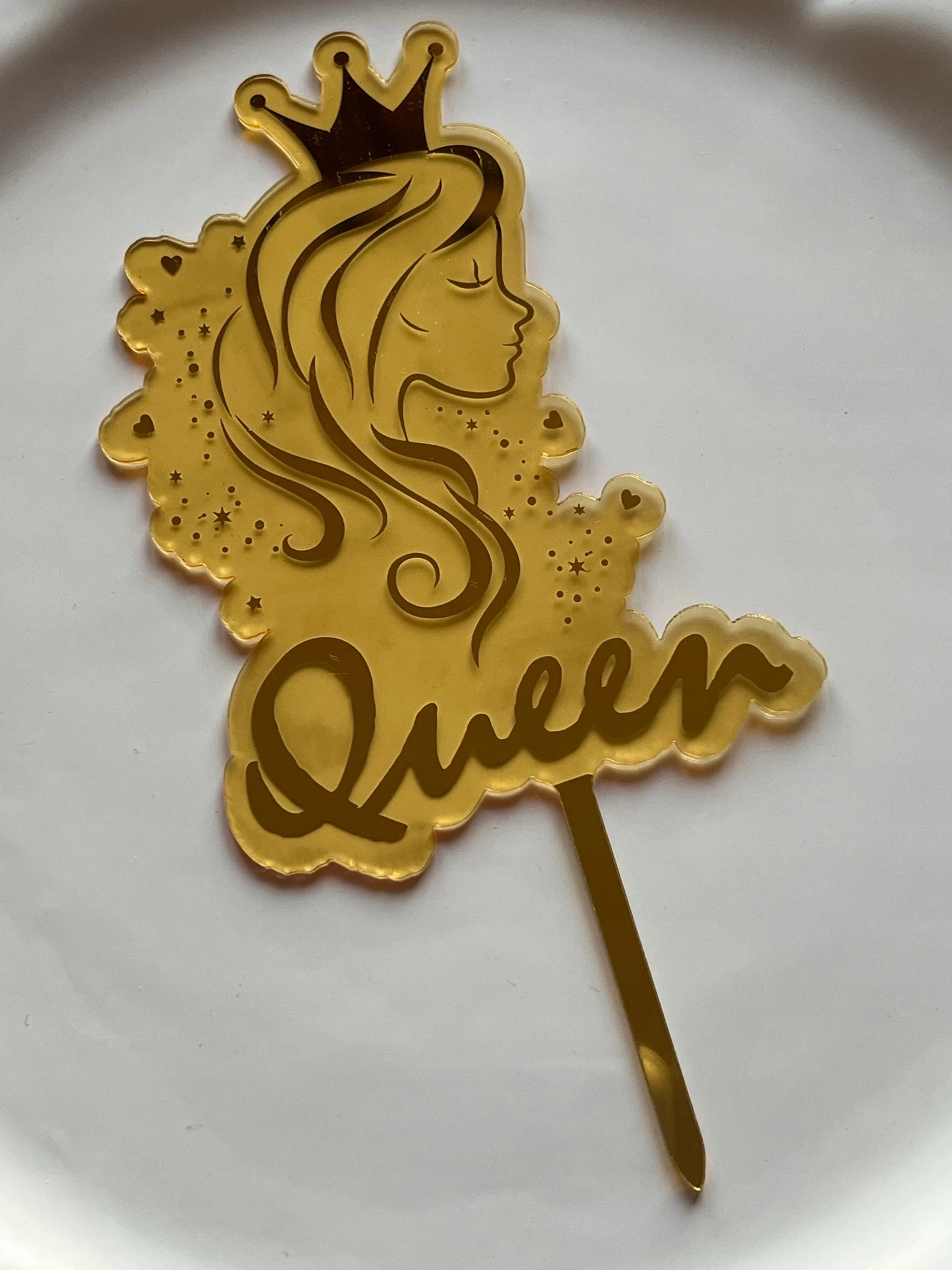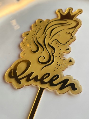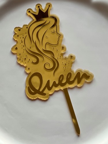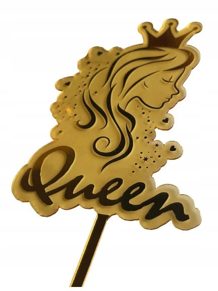 TOPPER NA TORT AKRYL KRÓLOWA ZŁOTE LUSTRO QUEEN